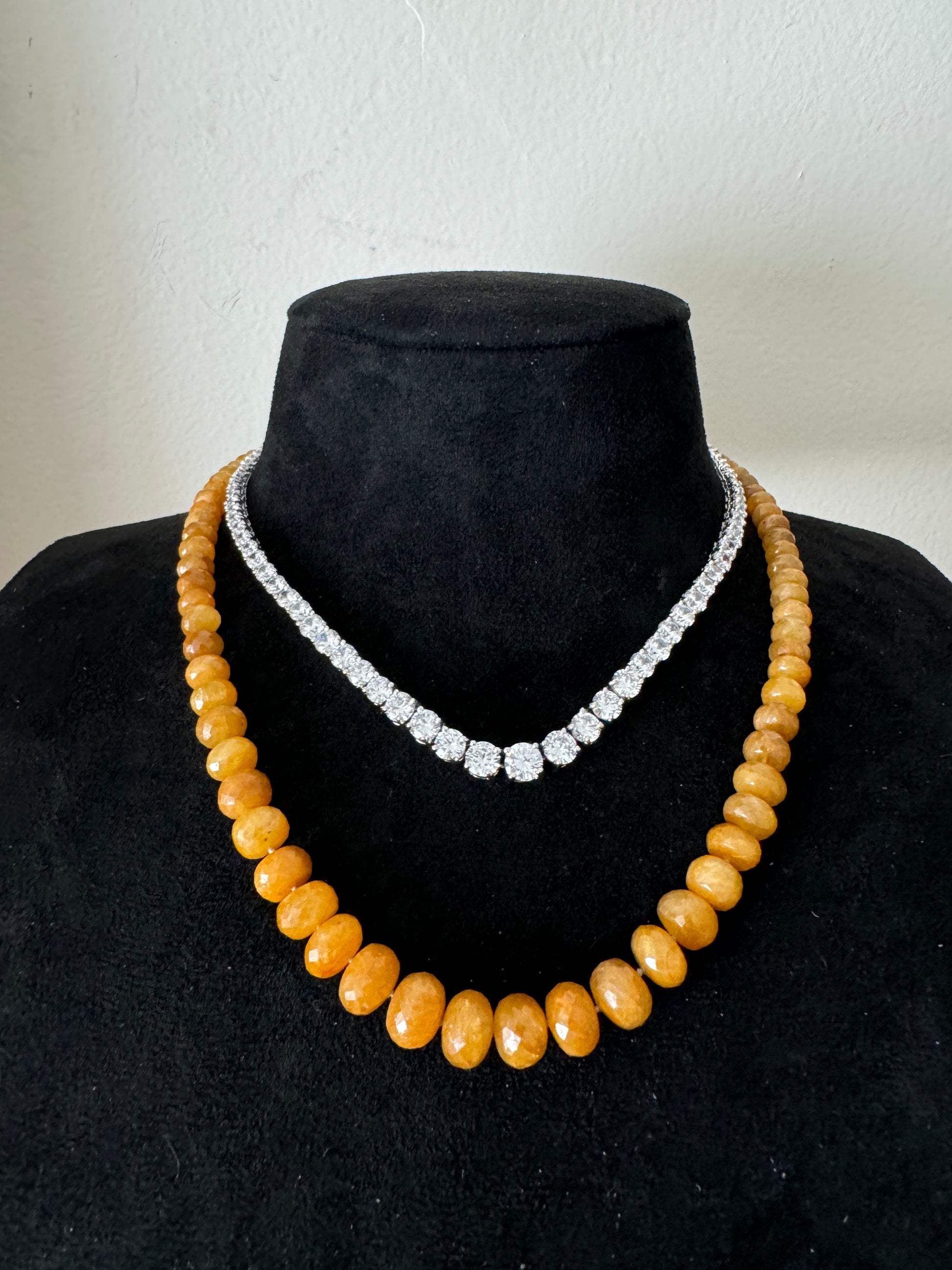 Graduated. Faceted. Yellow Sapphire Rondelle Necklace, Knotted on Silk with Diamond Clasp
